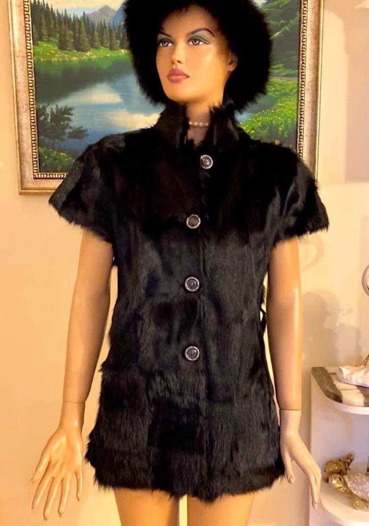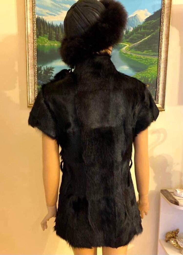Елегантно кожено палто от естествена кожа с къс ръкав