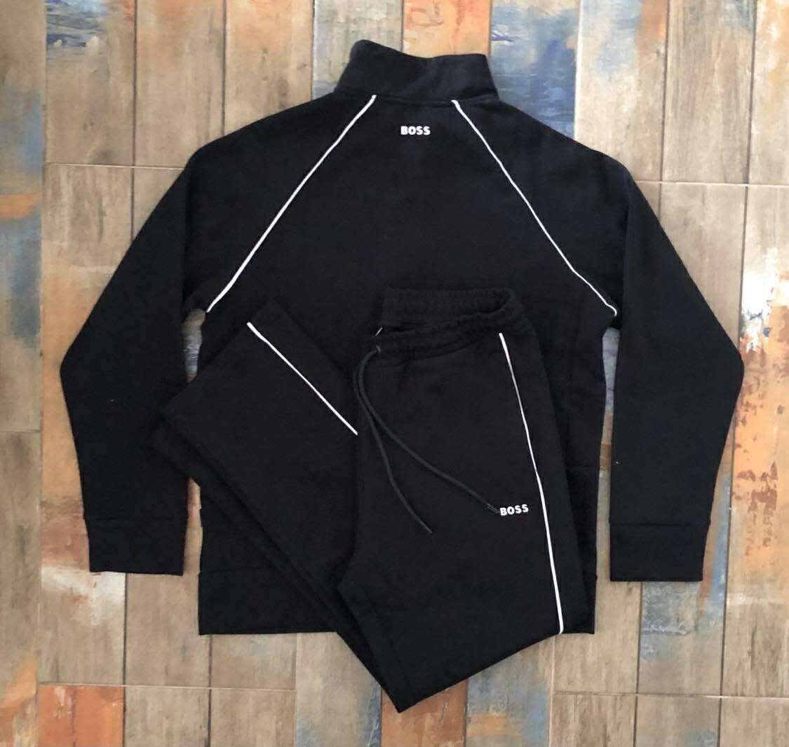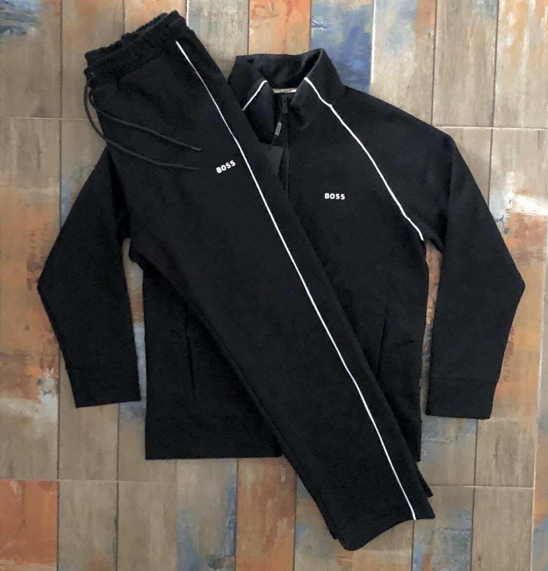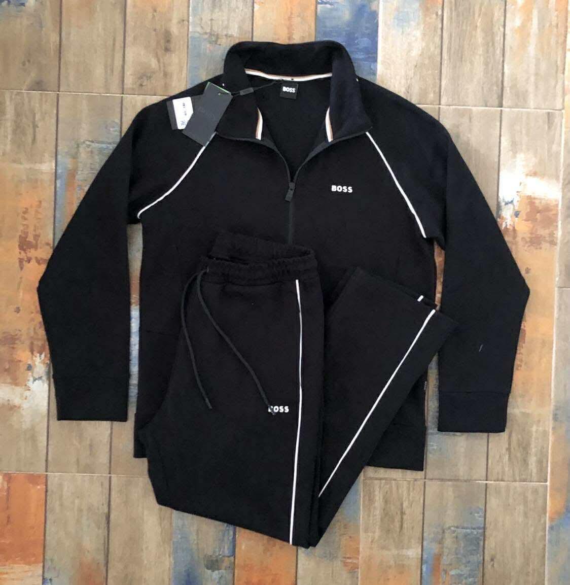 Мъжки спортен екип Hugo Boss в модерна комбинация от червено и черно, съчетаващ елегантност и комфорт. Изработен е от висококачествен памук с еластан, който осигурява мекота, дишаемост и свобода на движение.