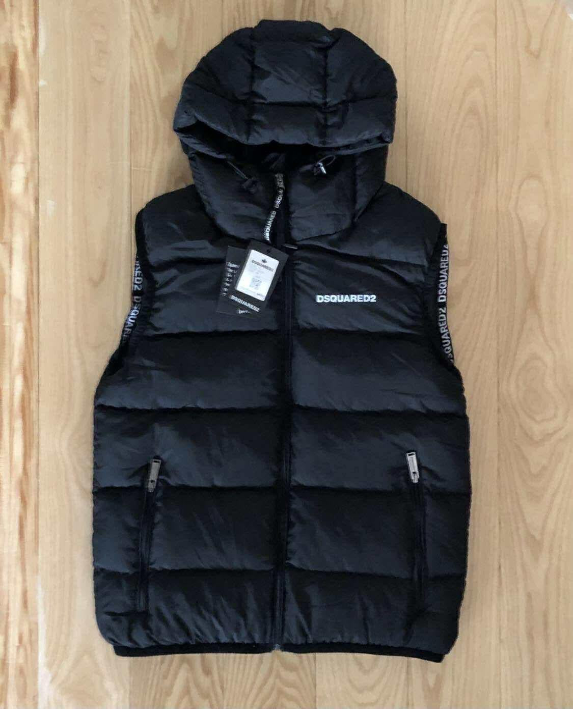 Мъжки елек Dsquared2 в класически черен цвят. Изработен от висококачествена лека материя с гланцов ефект, която осигурява топлина и защита от вятър, без да утежнява силуета.